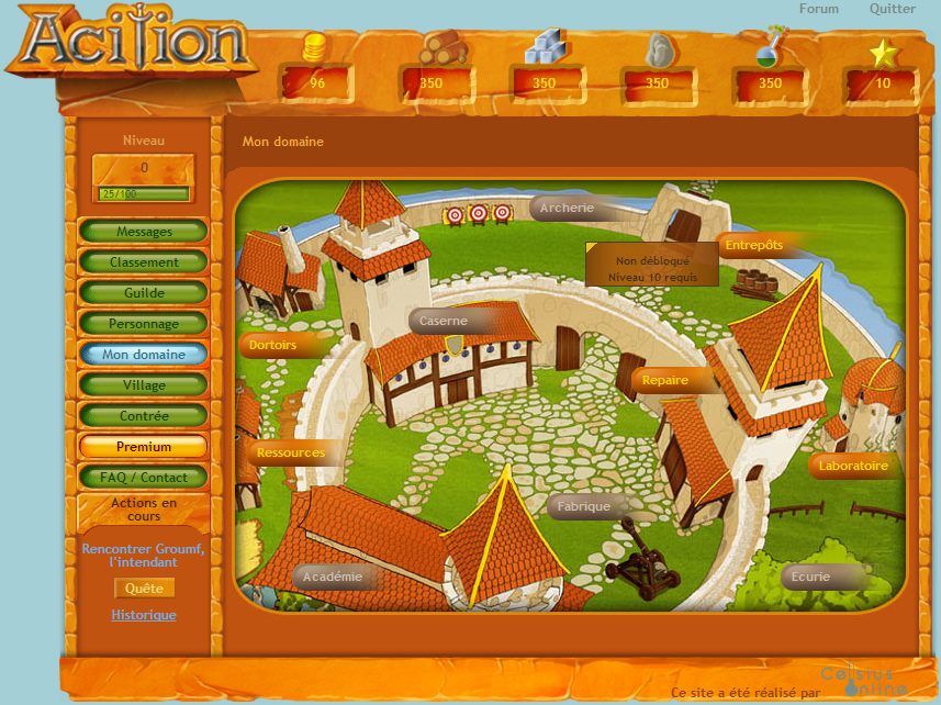 De même on y retrouve des éléments plus classiques des jeux en ligne comme la production de ressources pour augmenter des bâtiments personnels. Vous y gérez non pas un seul personnage mais un personnage principal et une multitude de "pions" qui formeront votre armée utile dans vos aventures.
